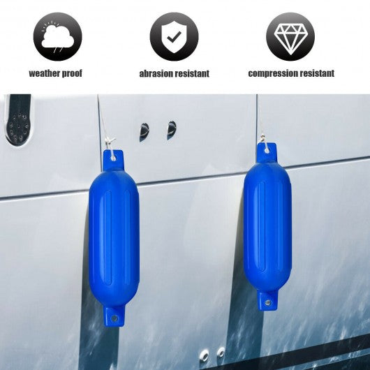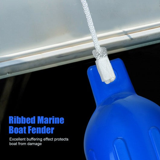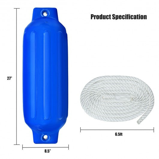 These 4 pack ribbed boat fender set is of high quality and could be an ideal choice for sailors and ship owners. Crafted of premium PVC material this item is anti-abrasive and UV-resistant. 3 mm thickness surface adds much strength and durability to the overall structure. Therefore it could serve you for a long time. Vertical ribs on all sides make it not prone to roll but could effectively reduce abrasions to protect boat. Two ropes holes on both ends allow you to hang on this item in vertical direction or horizontal direction. 4 ropes of 71 inch also bring much convenience for installation. More importantly this marine fender features an excellent performance of buffering which could effectively safeguard the boat or docks from damage caused by unexpected collision. It is worthwhile to have a try. If you are looking for a product such as this don't hesitate to buy it! Non-abrasive and UV-resistant PVC material ensures long lifespan Two reinforced eyelets make it possible to be hung vertically or horizontally 3 mm thick cover for maximum strength and durability Equipped with ropes and inflator bring much convenience Excellent buffering effect protects boat from damage PVC material makes it showcase a glossy appearance Vertical ribs could minimize rolling and protect this item against abrasions
