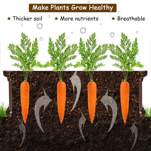 This large raised garden bed is a good solution to ensure the healthy growth of your plants while protecting them from your pets. The plant box is made of high-density polyethylene (HDPE) which is weather-resistant and rugged and great for outdoor using. Unlike other planting boxes this planting box uses slot connection so it is not only easier to assemble but tightly connected. The ground stakes and corner brackets are design to keep the plant box in place and ensure plant safety. Additionally the large square raised garden bed with classic style can help you grow plants as well as decor your garden. If you are looking for it don't hesitate to buy it! HDPE plant box is durable as well as not easy get rusty Large raised plant bed is enough for growing vegetables and flowers Lightweight plant box adopts blow molding process Simple slot structure for easy assembly Perfect for growing vegetables flowers and herbs Four corner brackets are designed to keep the plant box in place Ground stakes fix the plant bed to the ground tightly Great d�cor for your patio garden balcony and yard