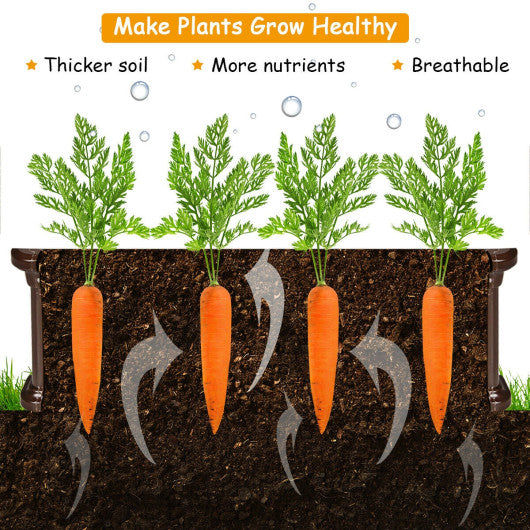 This large raised garden bed is a good solution to ensure the healthy growth of your plants while protecting them from your pets. The plant box is made of high-density polyethylene (HDPE) which is weather-resistant and rugged and great for outdoor use. Unlike other planting boxes this planting box uses a slot connection so it is not only easier to assemble but tightly connected. The ground stakes and corner brackets are designed to keep the plant box in place and ensure plant safety. Additionally the large rectangle raised garden bed with classic style can help you grow plants as well as decor your garden. If you are looking for this product don't hesitate to place an order! HDPE plant box is durable as well as not easy get rusty Large raised plant bed is enough for growing vegetables and flowers Lightweight plant box adopts blow molding process Simple slot structure for easy assembly Perfect for growing vegetables flowers and herbs Four corner brackets are designed to keep the plant box in place Ground stakes fix the plant bed to the ground tightly Great décor for your patio garden balcony and yard