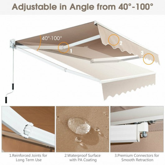 8FT x 6.5FT Retractable Aluminum Patio Sun Awning-Beige