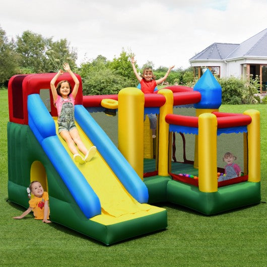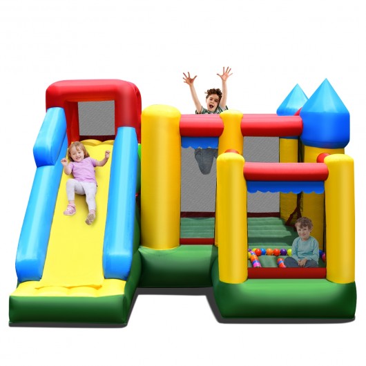 This inflatable castle is a bounce house with great popularity. Made of waterproof and flame-resistant material the bounce house is durable for long term use. It?s easy to blow up and take down with a blower (not included). It has outstanding overall features and is an ideal bounce house for backyards indoors sleepovers and more. What a great present for your little prince or princess to bounce around. Brand new and good quality Easy and quick to blow up Waterproof and flame-resistant material Heavy duty and larger in size Large mesh windows Long fill tube keeps blower away from bounce Easy to setup & take down; instructions included With balls to play Blower is required for use and not included Note: A 680 W blower is required for use but not included