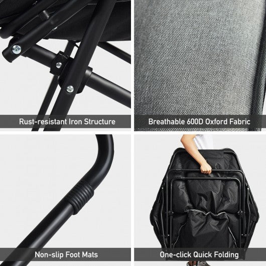 Specification: Color: Gray Material: 600D Oxford cotton iron Product size:33.5" x 30.5" x 34.5"(L x W x H) Folding size: 34.5" x 34.5" x 3.5"(L x W x H) Net weight: 11 lbs Weight capacity: 300 lbs Package includes? 1 x Saucer chair 1 x User's manual