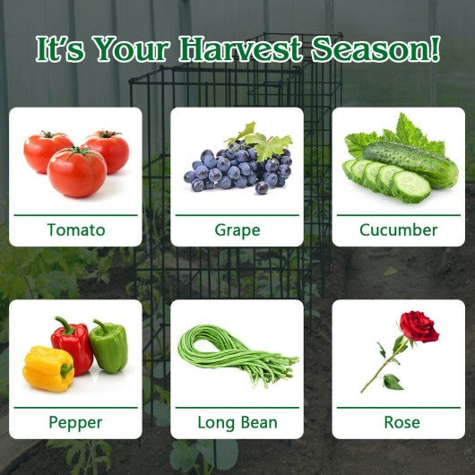 Whatever you want to plant jasmine beans grapes peppers or roses this support cage is here right for satisfying all your needs!   There's no denying that the structure would stand up still during severe weather or strong wind. Help yourself to enjoy the DIY garden and stay closer to nature!   If you are looking for plant trellis like that do not hesitate to buy it!   Stable iron frame with proper height to encourage vertical growth Spray painted surface durable and rust-resistant for long service time Suitable for all climbing plants such as beans grapes peppers rose etc. Staggered lock design for stable connection and multiple combinations Elegant slim dark green appearance perfect for the country lifestyle Light 3lbs weight for easy carrying to save time and energy Folding design convenient for easy storage and space-saving