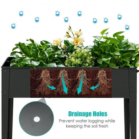 This elevated garden bed will be a good partner to help you build a green world!   The large box on the top allows you to raise a variety of plants and flowers such as vegetables ferns and other plants. And you can put your tools shovels watering pots on the wide bottom shelf. Made of premium metal material the outdoor garden box can serve you for a long time without breaking. It comes with an ergonomic handle and 2 smooth wheels which makes it easy to move anywhere. What’s more the drainage holes are specially designed for better ventilation and avoiding flooding. The portable garden bed with suitable height enables you to garden without having to bend over. It is ideal for indoor and outdoor including garden patio balcony and living room.   Start and enjoy your gardening with your family or friends!   Spacious growing area and storage shelf for versatile use Heavy-duty metal frame ensures durability and load capacity Non-slip rubber feet prevent the floor from being scratched 2 rolling wheels and ergonomic handle for easy movement The drainage system allows excess water to flow away Quick assembly with required parts and easy-to-follow manual Suitable for garden balcony patio balcony and other places 32.5'' humanized design brings a lot of conveniences