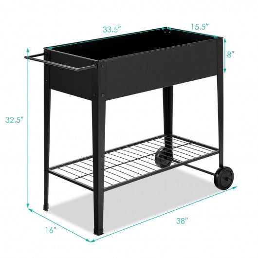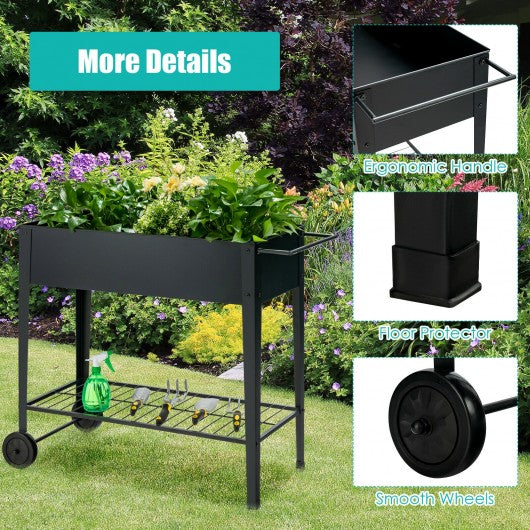 Raised Garden Bed Elevated Planter Box on Wheels Steel Planter with Shelf-Black
