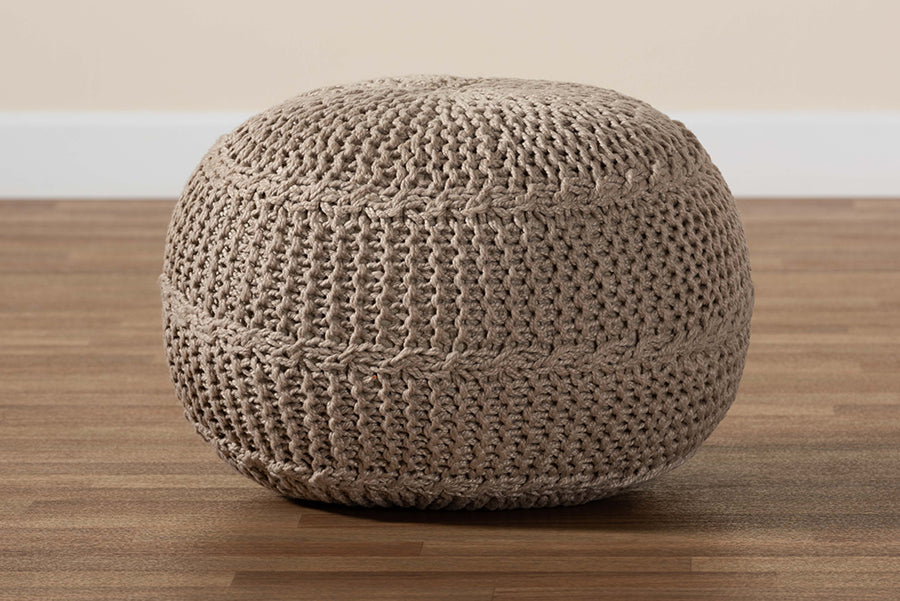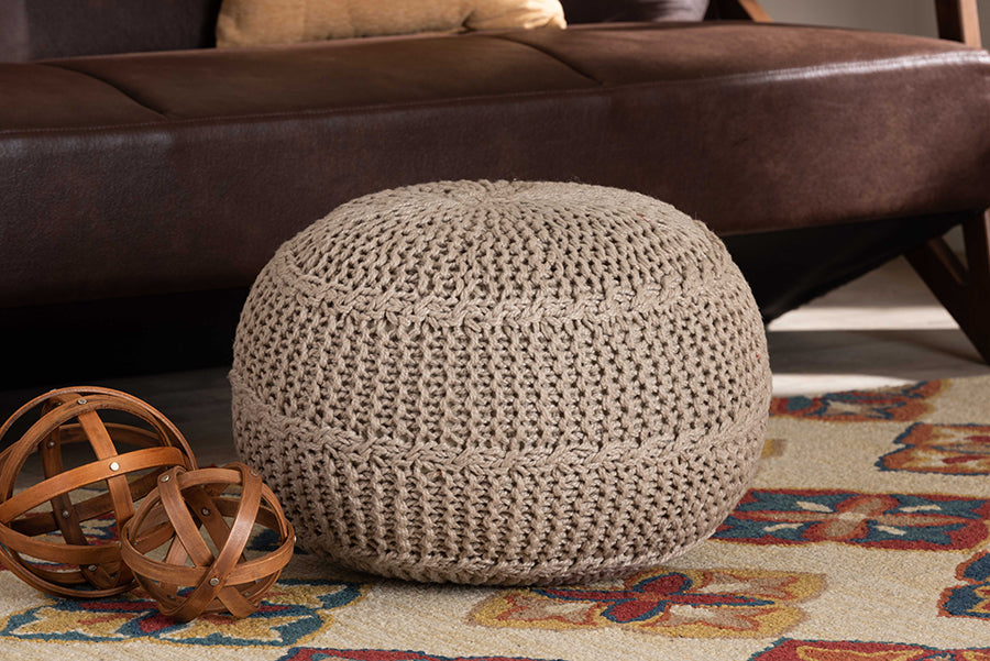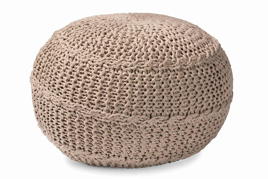 Baxton Studio Palmas Modern and Contemporary Bohemian Beige Handwoven Pet Yarn Pouf Ottoman