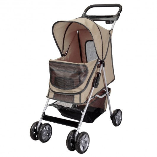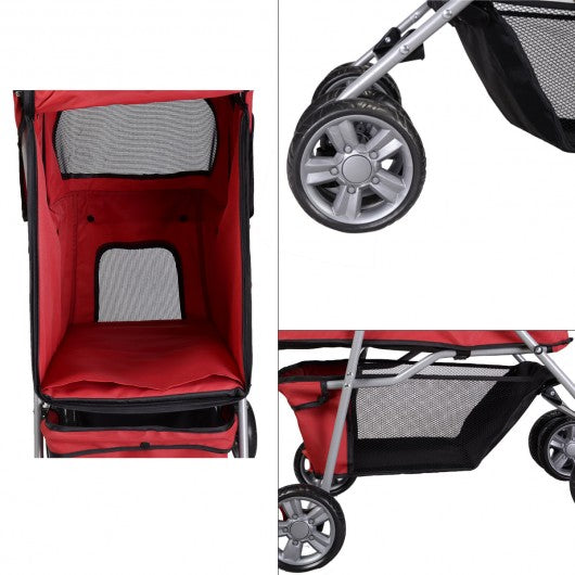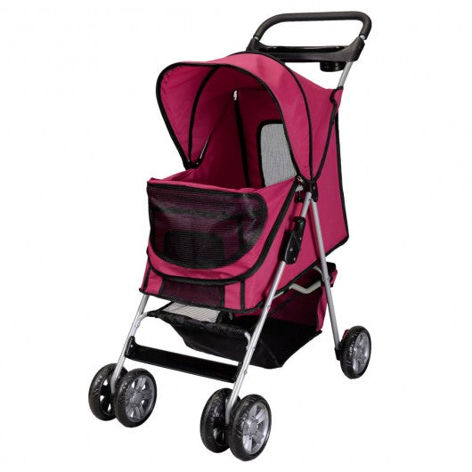 Large Deluxe Folding 4 Wheels Pet Dog Cat Carrier Stroller 8 Colors Choice Rose