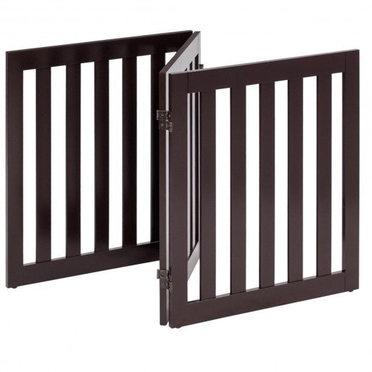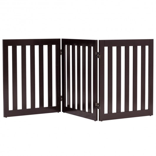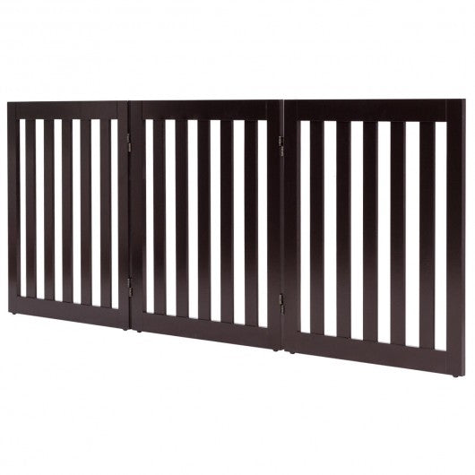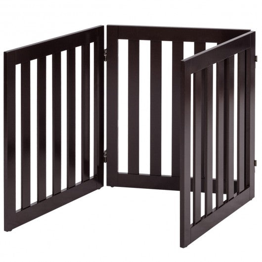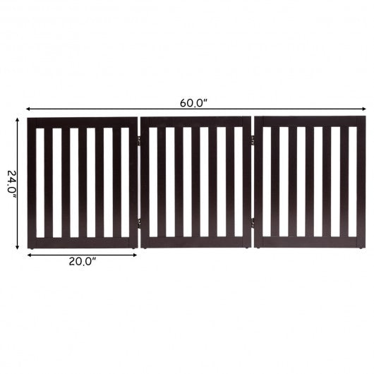 24'' Folding Standing 3 Panels Wood Pet Fence-Brown