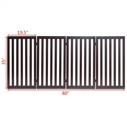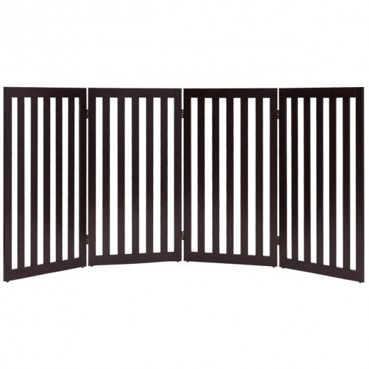 35'' Folding Standing 4 Panel Wood Pet Fence-Brown
