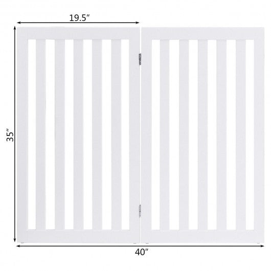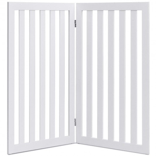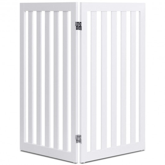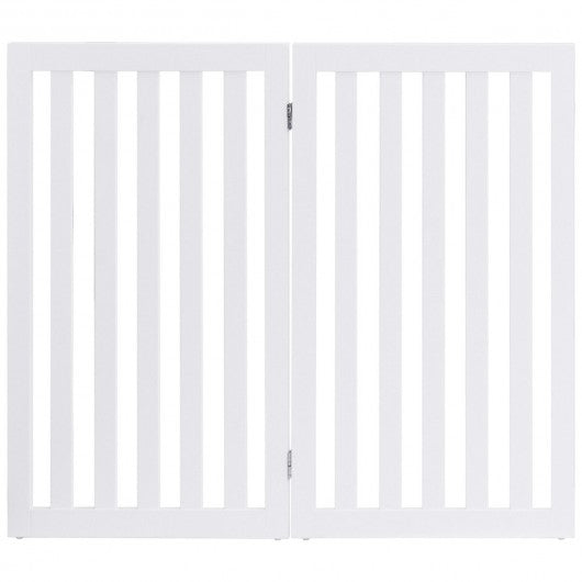 35" Folding Standing 2/4 Panel Wood Pet Fence-White-A