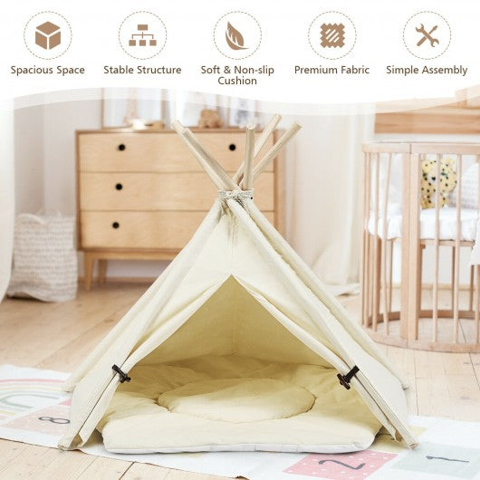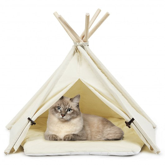 Indoor Pet Teepee Dog Puppy Cat Bed Portable Canvas Tent and House with Cushion