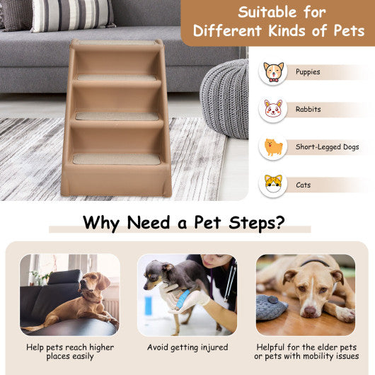 4 Steps Folding Pet Stairs with Safe Side Rail-Coffee