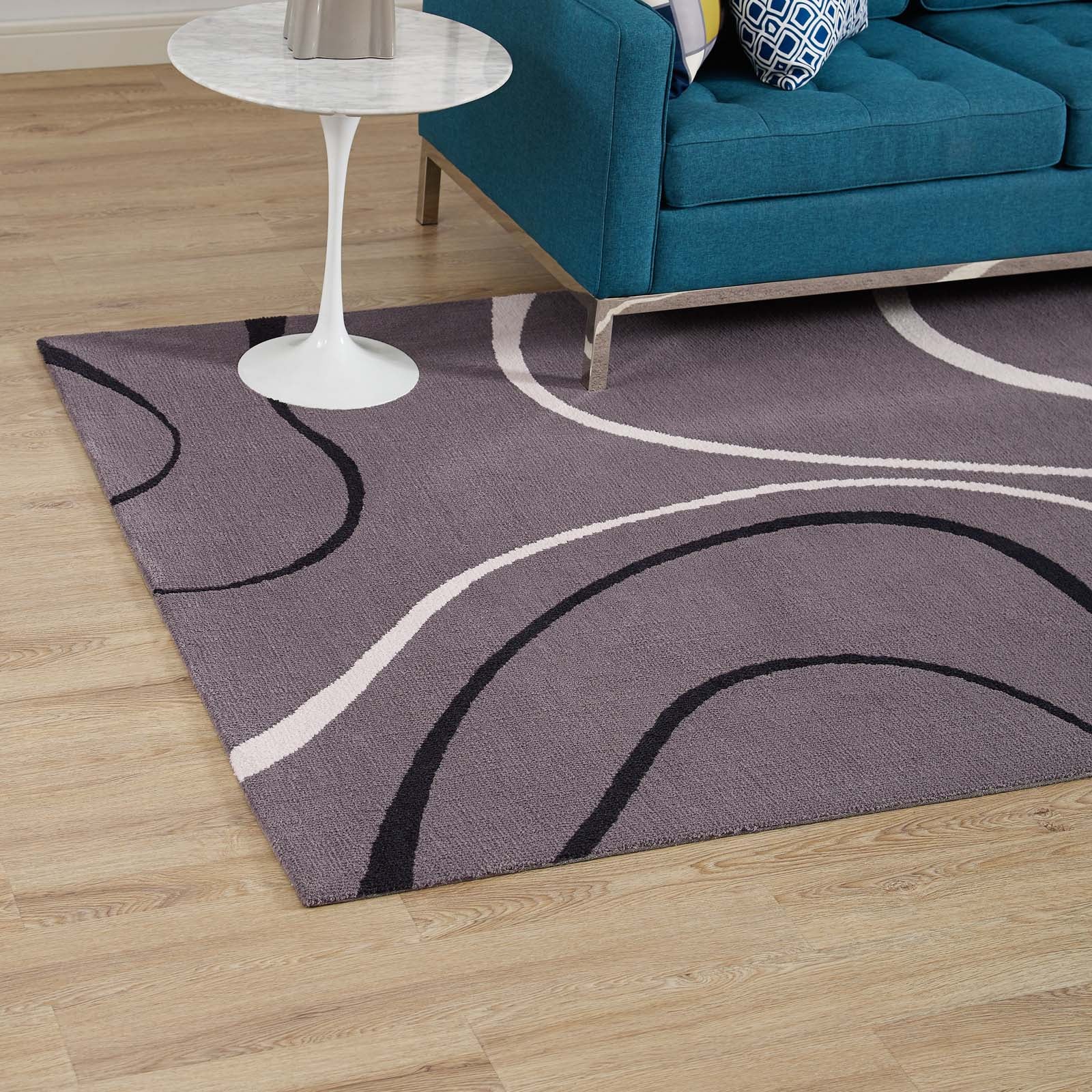 Modway Therese Abstract Swirl 5X8 Area Rug - Charcoal, Black And Ivory R-1002B-58