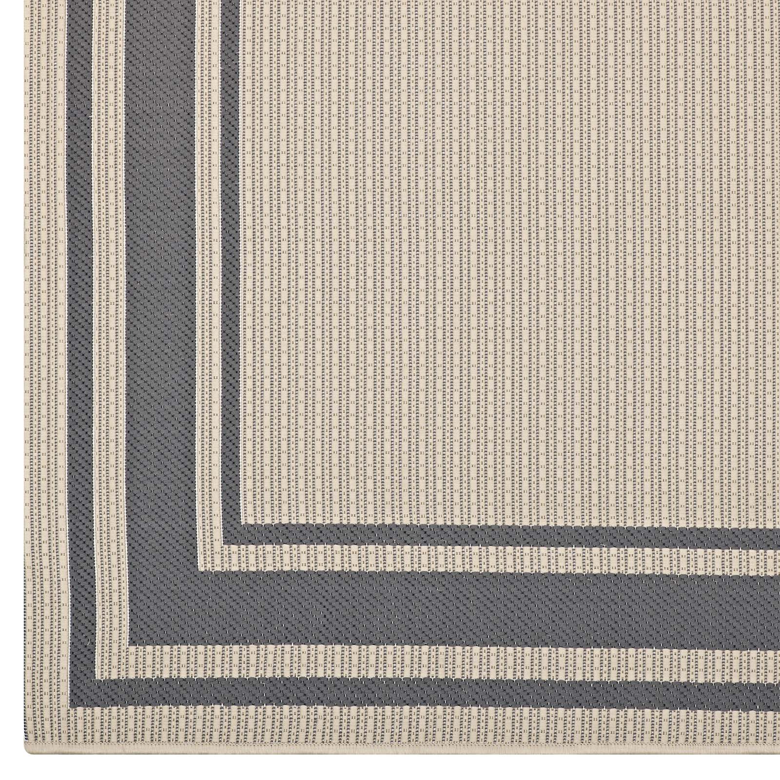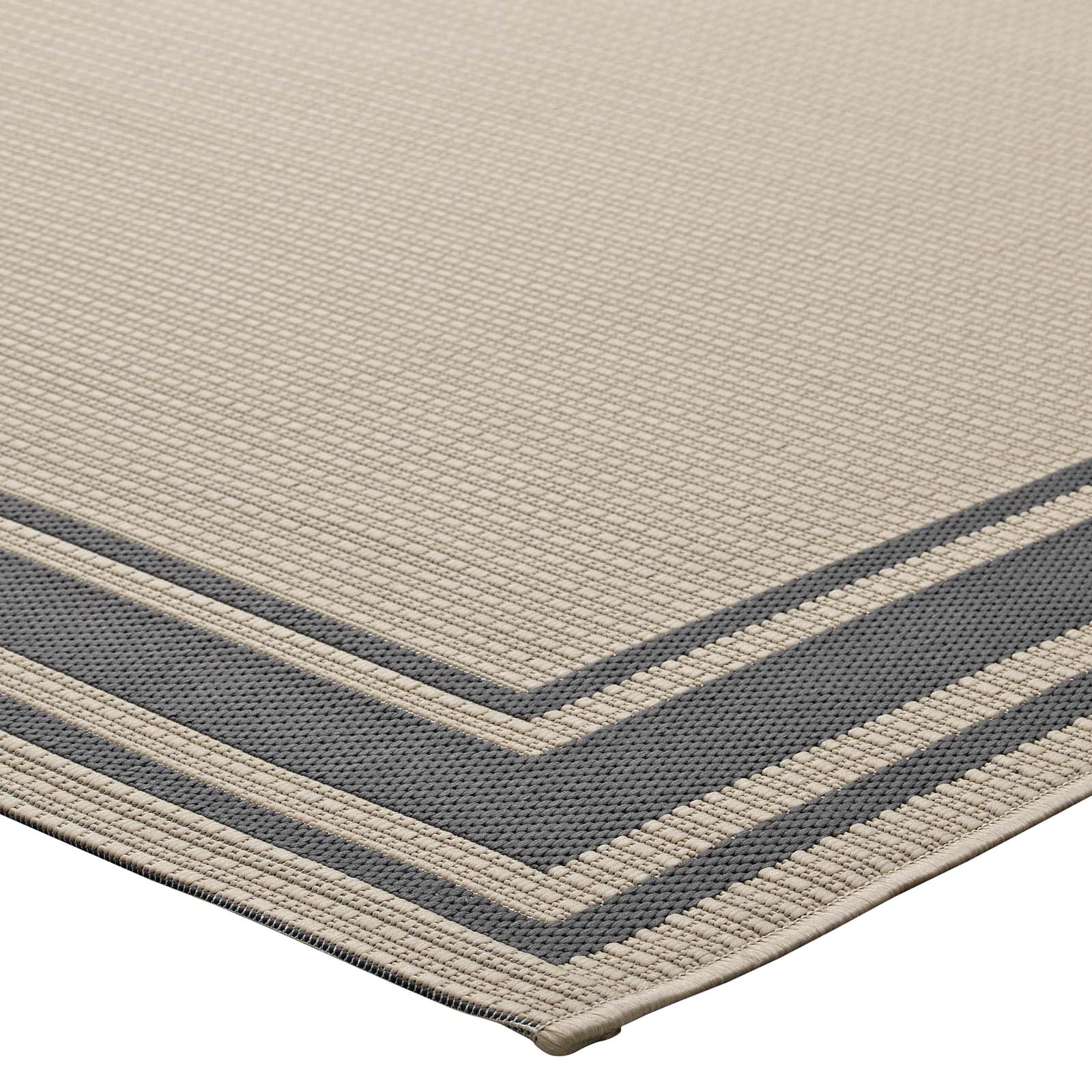 Make a sophisticated statement with the Rim Solid Border Borderline Indoor and Outdoor Area Rug. Patterned with an elegant design, Rim is a durable and soft machine-woven polypropylene rug that offers wide-ranging support. Featuring a linear design with a low pile weave and gripping rubber bottom, this all-weather area rug is a perfect addition to the outdoor patio, porch, deck, or inside the house in the living room, bedroom, kitchen or dining room. Rim is a family-friendly fade and stain resistant rug with easy maintenance. Hose down or vacuum periodically. Create a contemporary play area for kids and pets in high-traffic areas while protecting your floor from spills and heavy furniture with this carefree decor solution. Set Includes: One - Rim Solid Border Borderline 8x10 Indoor and Outdoor Area Rug