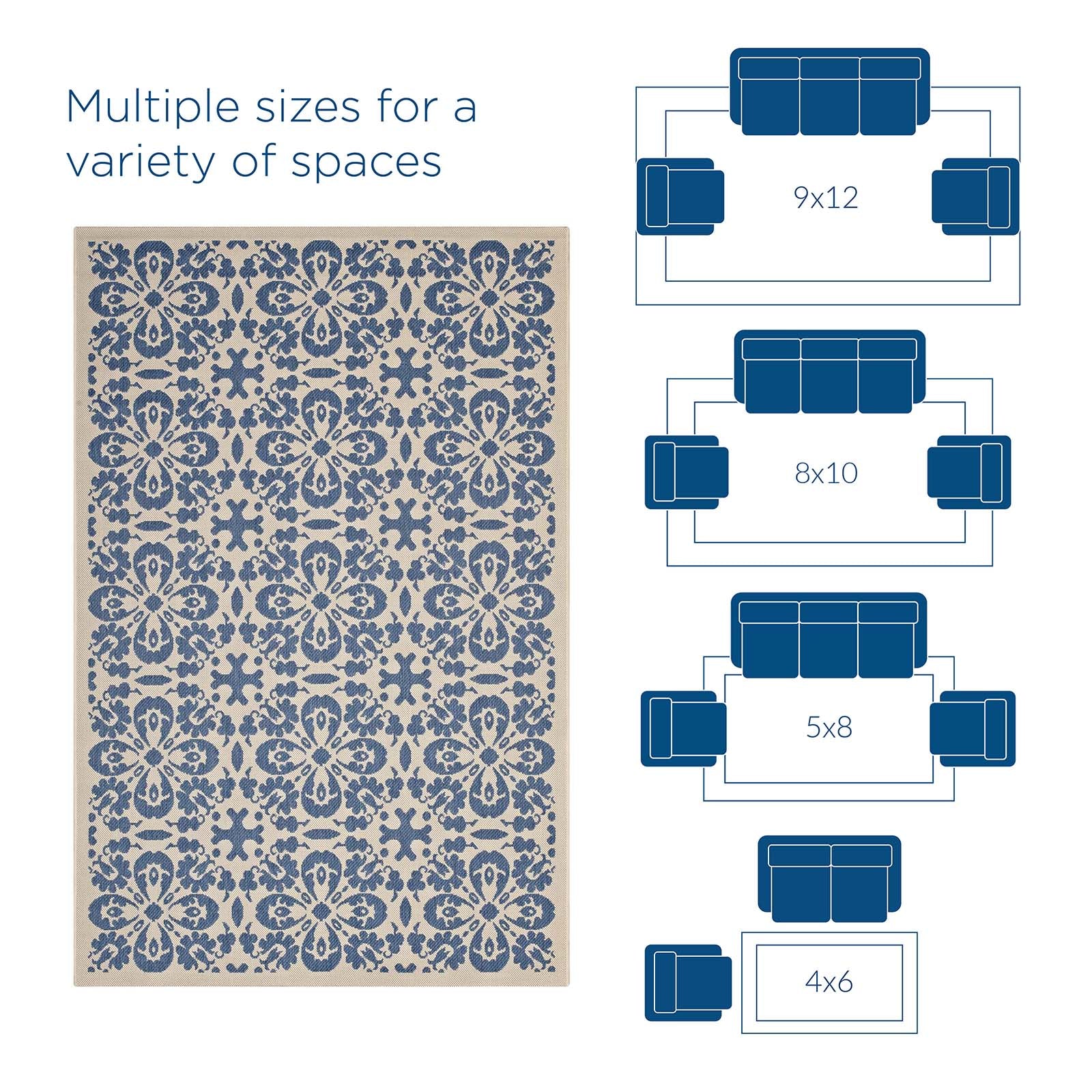 Make a sophisticated statement with the Ariana Vintage Floral Trellis Indoor and Outdoor Area Rug. Patterned with an elegant design, Ariana is a durable and soft machine-woven polypropylene rug that offers wide-ranging support. Featuring a vintage floral lattice design with a low pile weave and gripping rubber bottom, this all-weather area rug is a perfect addition to the outdoor patio, porch, deck, or inside the house in the living room, bedroom, kitchen, or dining room. Ariana is a family-friendly, fade and stain resistant rug with easy maintenance. Hose down or vacuum periodically. Create a contemporary play area for kids and pets in high-traffic areas while protecting your floor from spills and heavy furniture with this carefree decor solution. Set Includes: One - Ariana Vintage Floral Trellis 4x6 Indoor and Outdoor Area Rug
