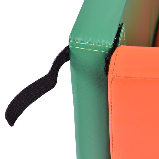 Specification: Mix color: Orange green blue yellow Material: PU leather cover+ epe pearl wool inside Dimension (L x W x H): Orange bottom folded mat-size: 53.1” x 43” x 2” Orange side mat-size: 53” x 21” x 2” Blue side mat-size: 53” x 21” x 2” Green folded mat-size: 43” x 21” x 2” Yellow folded mat-size: 43.3” x 21.4” x 2” Package included: 1 x Yellow folded mat 1 x Green folded mat 1 x Blue unfolded mat 1 x Orange unfolded mat 1 x Orange folded mat