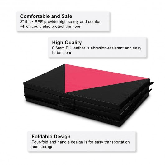 Specification: Color: Pink & black Material: EPE pearl wool (interior) / PU leather (cover) Dimension: 4' x 10' x 2" (W x L x Thickness) Panel dimension: 4' x 2.5' x 2" (W x L x Thickness) Package includes: 1 x Gymnastics mat