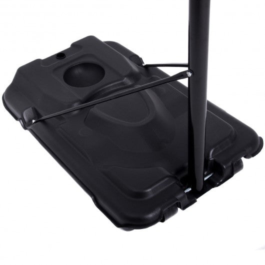 The basketball stand can give you an authentic basketball experience. With a sturdy base backboard and construction it is made to withstand many years of competitive play. Adjustable height allows both adults and kids to have great fun. Wheels on the bottom allow it to be easily moved around for added portability. Heavy-duty basketball rim is built to last and won't break off easily. Our basketball stand can allow you to play your favorite sports for hours right in your house or backyard. If this happens to be what you are looking for don't hesitate to buy it home. High-quality backboard: 43" impact backboard is constructed of high density Polypropylene for superior strength and durability Heavy-duty rim: Classic steel-made basketball rim with an all-weather nylon net won't break off easily Adjustable height: Telescoping mechanism adjusts from 7.5 to 12 feet. It allows both adults and kids to have great fun Weighted mobile base: 28-gallon base fills with water or sand to maintain stability and rolls to your desired location Widely used: It is suitable for beach communities schools and other indoor and outdoor places. You can play basketball for hours in your house or backyard