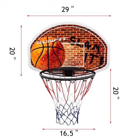 This wall mounted backboard can give you an authentic basketball experience. With a sturdy backboard and construction it is made to withstand many years of competitive play. Heavy-duty basketball rim is built to last and won't break off easily. With wall mounted design it can be installed at any height. The backboard can allow you to play basketball in your dorm bedroom sun room basement and office. It will bring you more interesting experience. Don't hesitate to buy it! 29" x 20" polypropylene backboard for superior strength and durability Heavy-duty basketball rim with an all-weather nylon net Made to withstand many years of competitive play Can be taken to your dorm bedroom sun room basement and office Wall mounted design can be installed at any height Both adults and kids can have great fun