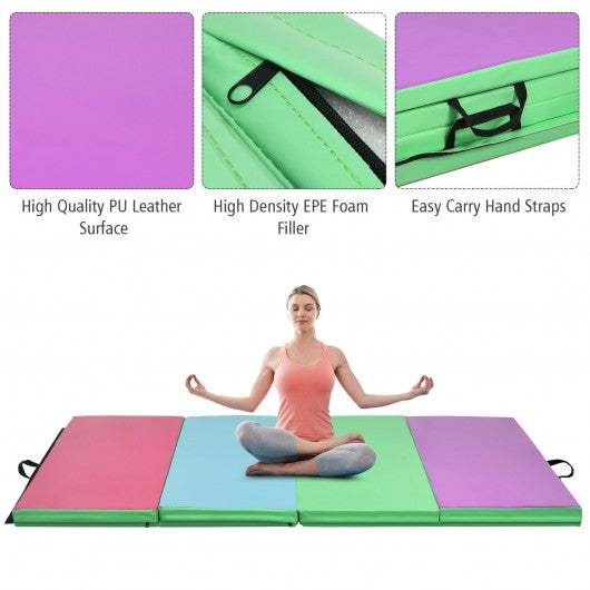 Gymnastics PU Mat Thick Folding Panel Gym Fitness Exercise-Multicolor