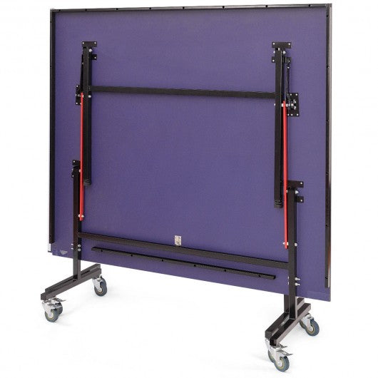 This versatile table tennis table is an official-sized option suitable for kids and adults of all ages to play. This indoor tennis table features a MDF playing surface supported by a rugged steel frame on locking casters for stable reliable play. You can play with your friends or your family. You also can fold up one side of the table for one-person play. It is easily folded for single-player practice and space-saving storage which is a versatile addition to your entertainment collection. This table is the ideal distraction for outdoor (not rainy day) entertainment. Don't hesitate to buy one! Quick set up assembly net included easy to be assembled Durable steel frame construction 5/8" thick MDF surface and reinforced legs stable and sturdy 8 wheels for convenient transport Small living areas for storage which is convenient to be folded up and placed upright to save space Folded into half for individual table tennis practice easy transition to playback mode Fun for kids and adults of all ages Easy locking mechanism providing added safety and stability while playing and when put away for storage