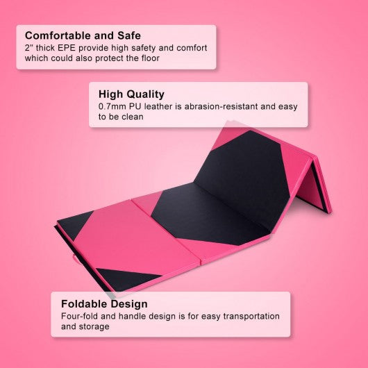 This is the exercise mat which is highly recommended when you take exercises such as yoga. It can bring you a comfortable and perfect exercising experience. It�s thick durable and foldable with sewn handles which makes it easy to carry and storage. The mat can be cleaned easily due to the PU- leather cover that is non-absorbent. This durable tumbling mat is ideal for your healthy workout. If you need an exercise mat like that don't hesitate to buy it! New design and high quality Comfortable with EPE pearl wool inside Easy to clean durable PU leather cover Perfect for many uses: tumbling exercise programs Pilates stretching yoga martial arts gymnastics day care activities etc. Convenient for carry and storage with 4 folding panels Sewn handles for easy transportation 4 sided Velcro strips on the end of the mat allows additional connection With more mats for tumbling exercises