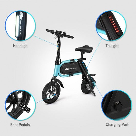 This high speed electric scooter will be your great choice to go out. The e-bike is a pedal free motor bicycle so that you can sit back and enjoy the ride while the throttle takes you to where you need to go. Powered by a lithium-ion battery it can reach speed up to 15.5 MPH. With the sturdy air-filled rubber wheels for shock absorbency and better traction you'll have a super smooth ride wherever you go. This scooter is a collapsible electric scooter which has a folding neck so commuters can easy storage after taking the bicycle. If you are looking for a electric scooter don't hesitate to buy it! Completely pedal free with two steel pegs to allow you to rest your legs 350 W high speed motor achieves top speed of 15.5 MPH with a range of 9-12 miles 3 shift levels can be set to meet your needs Powered by 36 V 4.0 Ah lithium Ion battery that fully charges in just 2-3 hours Rolling over inclines as steep as 30 degrees With the folding design this e-bike is easy to carry Save your more space for storage you can leave it anywhere of your office or store it into your vehicle when not use Innovative iron frame can support up to 265 lbs rider Cruise control for convenient longer distance traveling Sturdy air-filled rubber wheels for shock absorbency and better traction Waterproof design protects your trip on rainy days and provided with good anti-pressure ability Features a handbrake and a bell for a speedy secure stop A bright headlight and red warning light for ensuring you ride safely in the dark