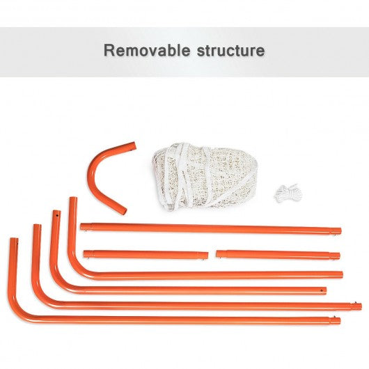 This lacrosse practice net is a perfect tool to improve your children's skills. Our backyard lacrosse goal�s figure is constructed with solid iron tube with baking paint for both building a stable frame and resisting severe weather. Net attached in the frame be made of waterproof and heat-resistant. All means that this lacrosse goal is fitted especially in outdoor training. Also this goal has large size which design for professional training and a good team may be created by using it to improve members� skills. If you are looking for such a round side table please don't hesitate to buy one! Brand new and high quality Large size for various competition Suitable for different skill level players to improve skills Sturdy & durable construction with solid iron frame Orange baking paint and high-strength polyester net is excellent in heat and moisture resistance Suitable in all-weather outdoor activities Detachable structure for easy store and transport A good gift to develop children's interest