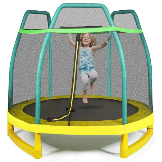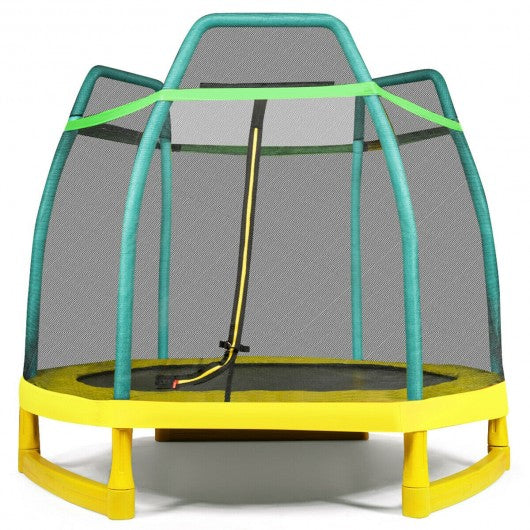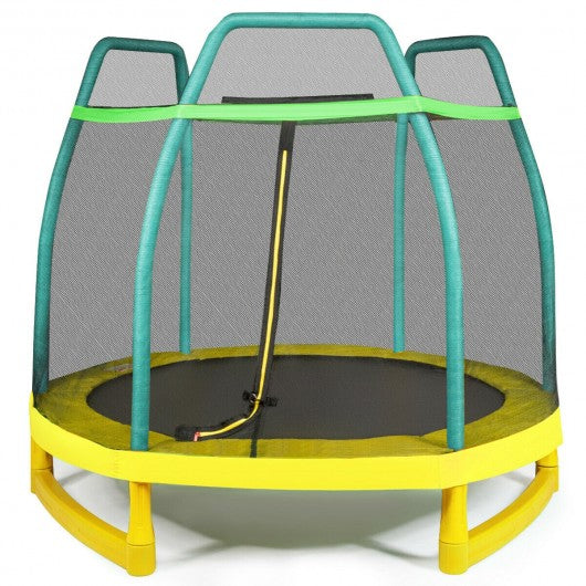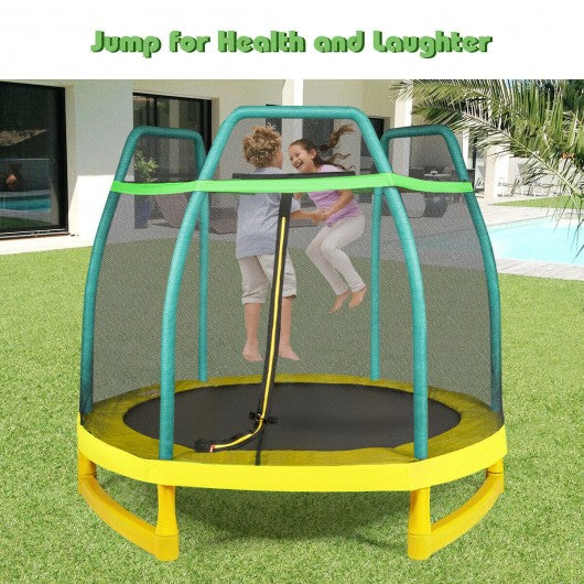 7FT Kids Trampoline W/ Safety Enclosure Net-Green
