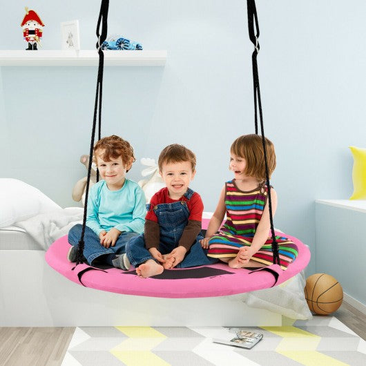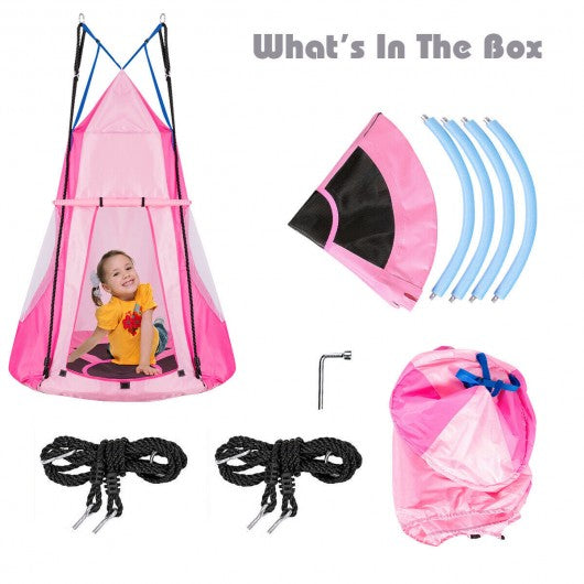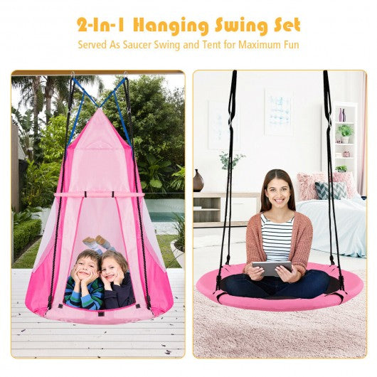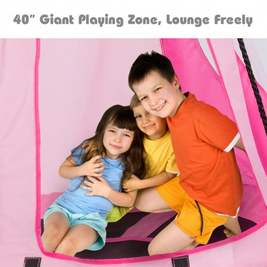 This hanging tree swing tent provides you with cozy and comfy nook to satisfy sensory needs. Combining the tent and standard platform swing it can be served as reading nook resting pod and hanging chair. Made of sturdy galvanized pipe frame with foam padding and high strength oxford fabric and PP jumping cloth this nest hanging swing seat is available for 2 or 3 kids with maximum load-bearing capacity-330 lbs. And the detachable tent with screen window and rolling door not only ensures the ultra safe riding but also gives kids private areas. Easily mount the swing chairs in the bedroom playroom or a backyard tree and take down for easy storage portable for travel and camping. If you are looking for such product don't hesitate to buy it. Swing hanging straps(not included) are needed if you wanna to hang this swing on tree Detachable play tent provides the private zone to sleep read Screen window and rolling door on tent for good ventilation Giant 40� diameter saucer swing perfect for 2 or 3 kids to play together Heavy-duty PP jumping cloth and 600D oxford fabric holds up to 330 lbs Sturdy galvanized pipe frame with foam padding enhance its stability and safety Greatly satisfying sensory needs and balance training Perfect for people who need relaxing therapy zone to calm their mind Easily mount in the bedroom playroom or a backyard tree Foldable mat for travel and camping