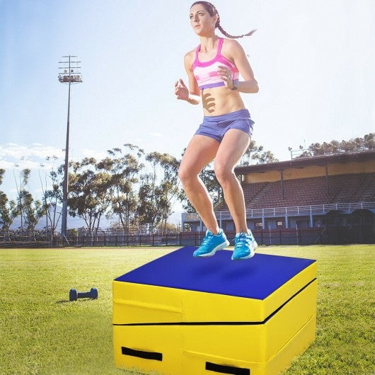 Specification: Color: Yellow + Blue Eco-friendly material: Pu + Pearl foam ( Stuffing ) Unfolded size: 60" x 30" x 14" ( L x W x H ) Folded size: 30" x 30" x 16" ( L x W x H ) Net weight: 12 lbs Package includes: 1 x Incline wedge ramp mat