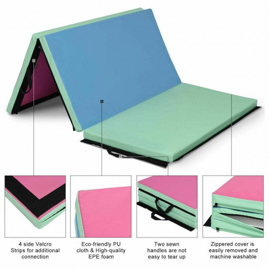 6' x 4' Tri-Fold Gymnastics Mat Thick Folding Panel-Multicolor