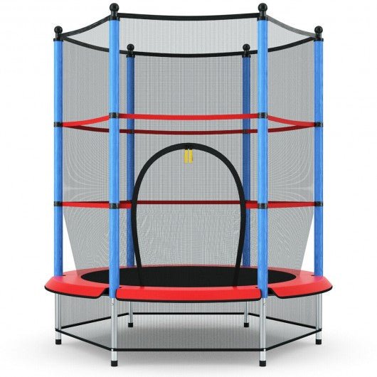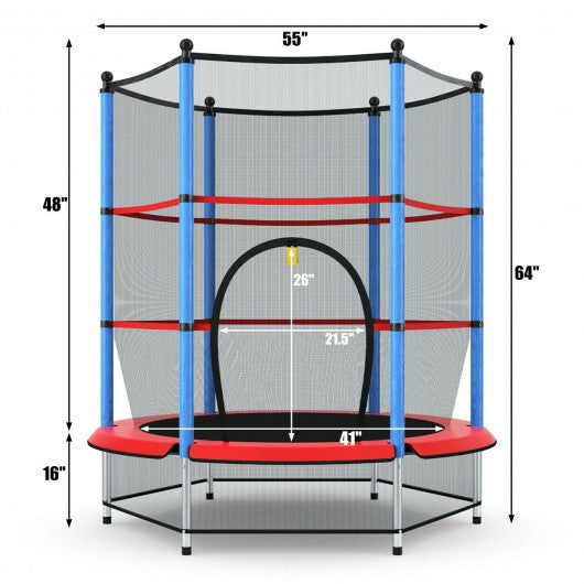 55" Youth Jumping Round Trampoline with Safety Pad Enclosure-Blue