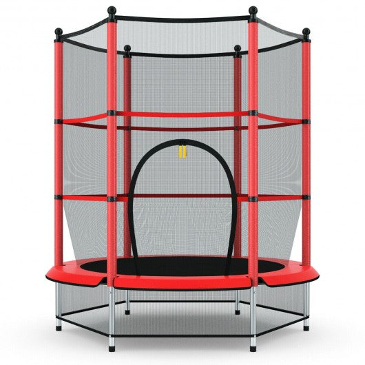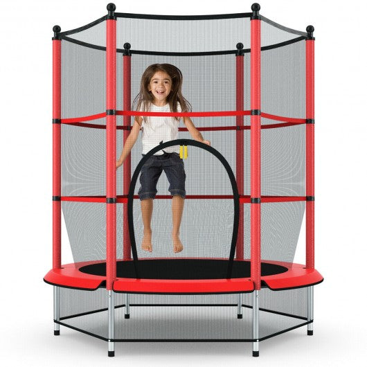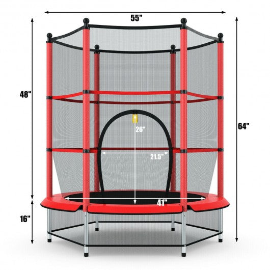 55" Youth Jumping Round Trampoline with Safety Pad Enclosure-Red