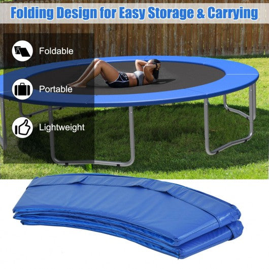 The exposed trampoline springs are always a safety hazard. Therefore for the safety of children and family members you need to buy a trampoline safety pad. And this may be your ideal choice! Made of high-quality materials our wide and thickened safety pad will not deform easily and can provide users with a good bounce experience. The waterproof and sun-proof surface makes it adapt to the changing weather outdoors. In addition it can perfectly cover the exposed trampoline springs greatly reducing the risk factor of trampoline activities. The folding design and lightweight quality make it convenient for you to store it in a corner or carry it to your destination. If you are choosing a trampoline pad don't miss it! If you are looking for this product don't hesitate to place an order! Reasonable size allows it to cover all springs perfectly Provide children with good protection and bounce experience High-quality PVC and PE materials greatly extend the service life Thick EPE closed-cell foam protects your kids from getting injured Elastic straps make it easy to replace and assemble Waterproof and sun-proof surface greatly simplifies the cleaning process Folding design and compact size make it easy to carry and store Good weather resistance makes it suitable for outdoor use