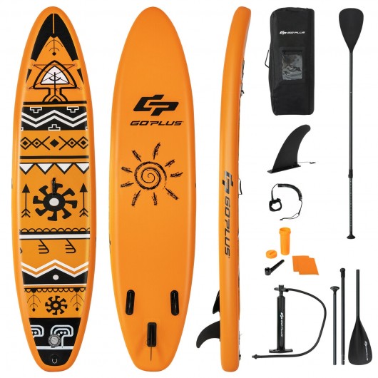 Specification: Color: Orange Material: PVC Overall dimension: 10.5' x 30" x 6"/11' x 30" x 6" ( L x W x H ) Net weight: 22lbs/32lbs Paddle length: 63"- 83" Package includes: 1 x Stand-up paddle board 1 x 3-Shafted adjustable aluminum paddle 1 x Hand pump with pressure gauge 1 x Valve wrench 1 x Repair kit 1 x Professional carry bag 1 x Center fin 1 X User' s manual