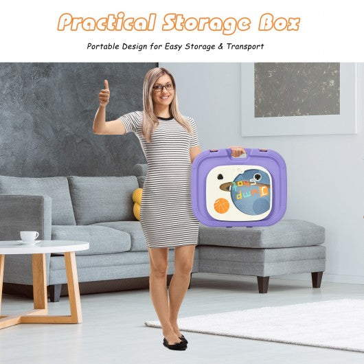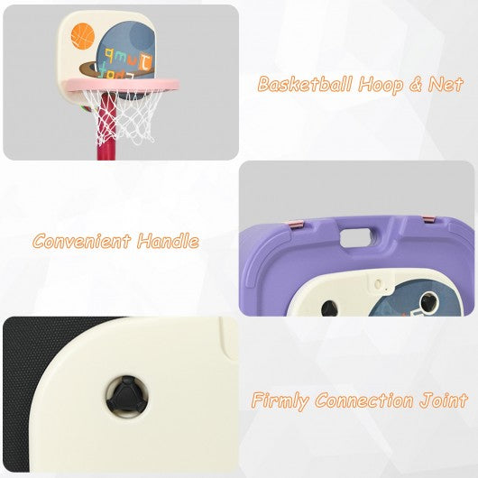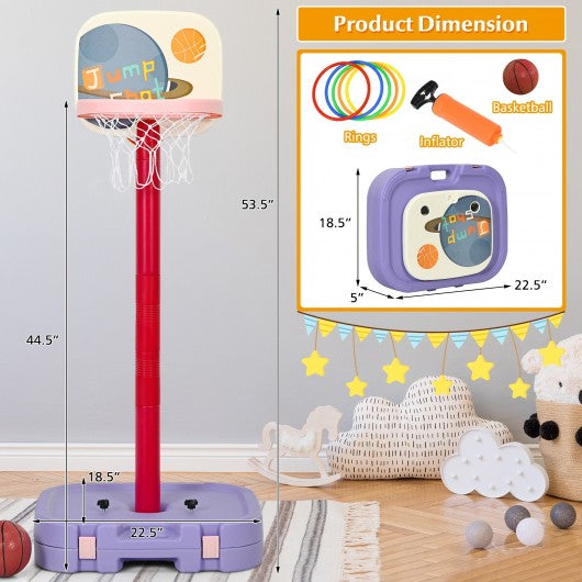 2 in 1 Kids Basketball Hoop Stand with Ring Toss and Storage Box-Purple