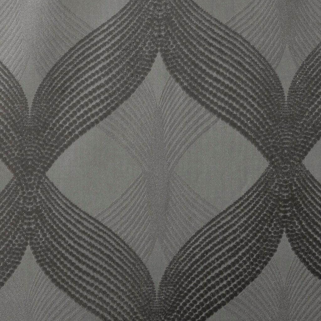 Combining luxe style with functionality, our SunSmart Bentley Ogee Knitted Jacquard Total Blackout Panel is the perfect update to dress any window. An ogee knitted jacquard design is featured in a rich charcoal hue, creating a luxurious sheen and texture. The heavy fabric uses a foamback and bonding finish enhancing the panel to block out all sunlight, provide a maximum protective barrier against noise intrusion, and offer a maximum level of privacy and energy savings. A silver grommet top finish makes it easy to hang, open, and close panels throughout the day; fits up to a 1.25 diameter rod. With 100% total blackout properties, this window panel is the perfect addition for bedrooms, media rooms, or any private spaces, giving your home a lavish and contemporary appeal. Lighting level: Pitch Black Ambiance.