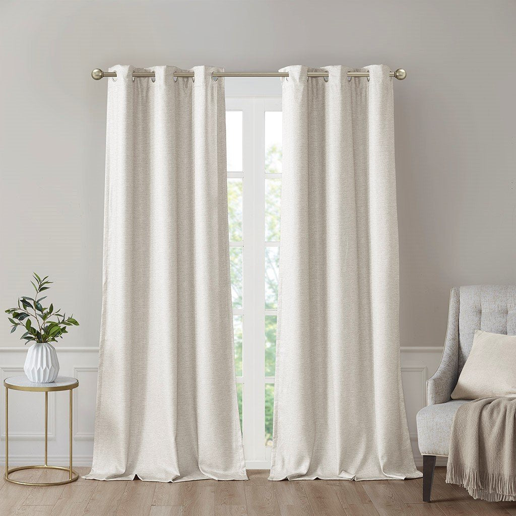 Sunsmart Como 100% Polyester Printed Faux Silk Total Blackout Window Panel Pair- Ivory SS40-0137 By Olliix