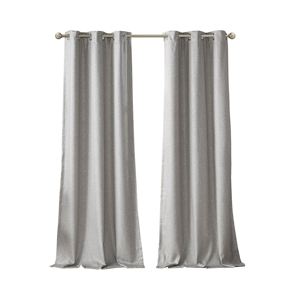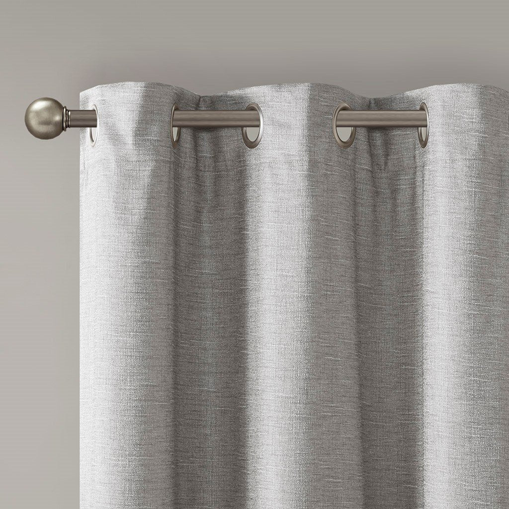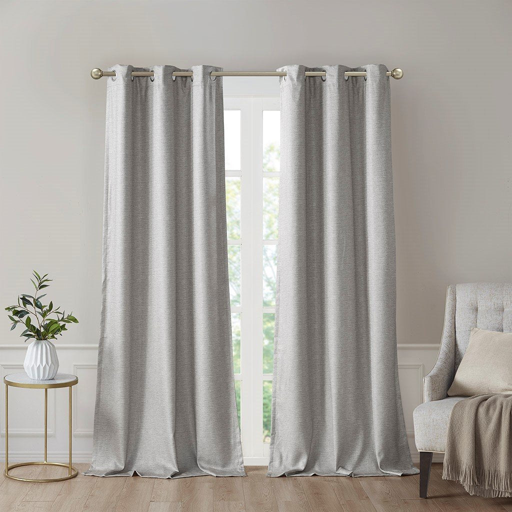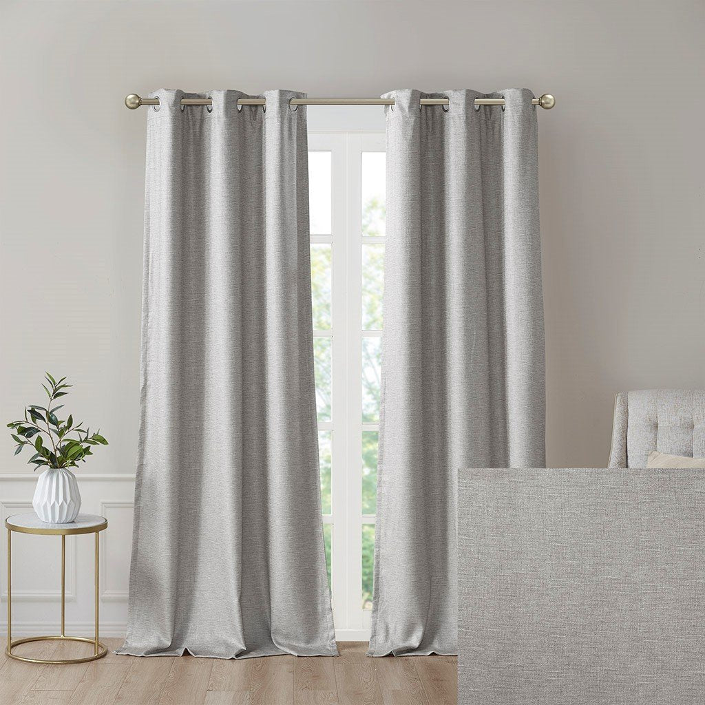 Sunsmart Como 100% Polyester Printed Faux Silk Total Blackout Window Panel Pair- Grey SS40-0143 By Olliix