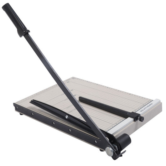 Accurate and safe to use the cutter makes it an easy way for documents being cut to a required size. The cutter is perfectly fitted for cutting your documents photos and other material to your wanted size in an easy and quick way. Shown in both centimeter and inch the cutter is designed for maximum flexibility. With comfortable handle and four rubber-covered feet the cutter ensures an extra stability. What's more the adjustable and lockable standard size guide is suitable for cutting accuracy. There features safety button at the guillotine and blade to prevent any accident or damage and the plastic handle makes it much more tight and easy to replace. Brand new and high quality Accurate—super durable and wear-resistant steel base with high grade printing ink markings which are shown in both centimeter and inch for maximum flexibility and ease of use Safe—specially designed safety button at the guillotine and blade to prevent any accident or damage; plastic handle to make it much more tight and easy to replace Material: Premium steel aluminum alloy and plastic Durable solid metal base with abs plastic components Adjustable and lockable standard size guide for cutting accuracy