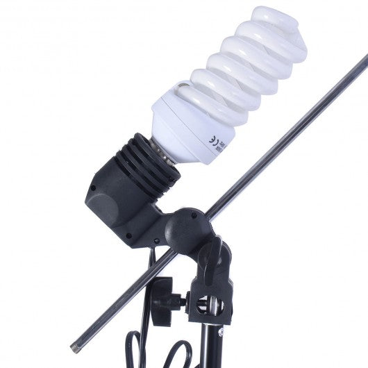 This lighting umbrella with stand is perfect to improve the lighting conditions when camera shooting. Equipped with energy saving compact fluorescent spiral bulb the lighting umbrella provides optimum illumination with 5500k color temperature. It is extendable high quality light stands reaching to 78" length at most that can perfectly suit your needs. There also features adjustable steel stand with triangle base two lighting umbrellas two sockets two bulbs and one carrying bag. The white umbrella reflector can provide soft and smooth spread of light as well as removing ugly shadows. The lighting umbrella with adjustable light head is a perfect solution for studio shooting. Brand new and high quality Energy saving compact fluorescent spiral bulb 45w super bright light bulbs provides optimum illumination with 5500k color temperature. Extendable high quality light stands 3 sections max 78" length can perfectly suit your needs. Adjustable light head for perfect light stream to your object Lightweight and easy to set up Compact enough for travel and carry UL-approved plug