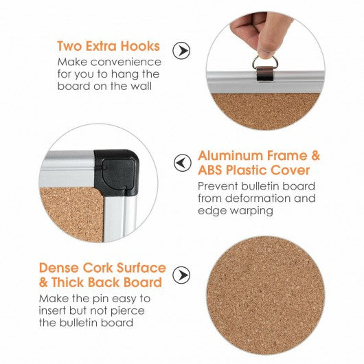24" x 36" Aluminum Framed Cork Board Bulletin Board with 12 Pins-1 Pack