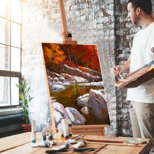 Need a better easel for upcoming continuous creation? If so you can’t miss this wooden floor easel. There is a slide canvas holder so that you can adjust it to your desired height whether you are standing outdoors or sitting indoors. It can also accommodate canvas of different sizes up to 36" to fulfill your changing requirement in different occasions. And your art supplies will be stored perfectly as well since it is designed with a large drawer and spacious tray. Everything will be within your arm’s reach. Needless to say the easel made form high-quality material means a better drawing experience. And that’s why this easel uses 100% natural beech wood which features good hardness and lasting durability. It is not easy to tip over during your important creation time since it chooses H-shaped frame with exceptional stability. Height adjustable design within the range from 59.5" to 76.5" to meet different demands The rotatable top button makes it possible to accommodate canvas up to 36" Large drawer store all sorts of painting supplies easy to open and close Spacious tray for easy access to brushes paints and more Natural beechwood with good hardness for lasting durability Smooth finished surface without any burrs for higher using safety Sturdy H frame with solid connection and large weight-bearing capacity Suitable for artists students adults for concentrative creation Easy to assemble in a short time take up less floor space