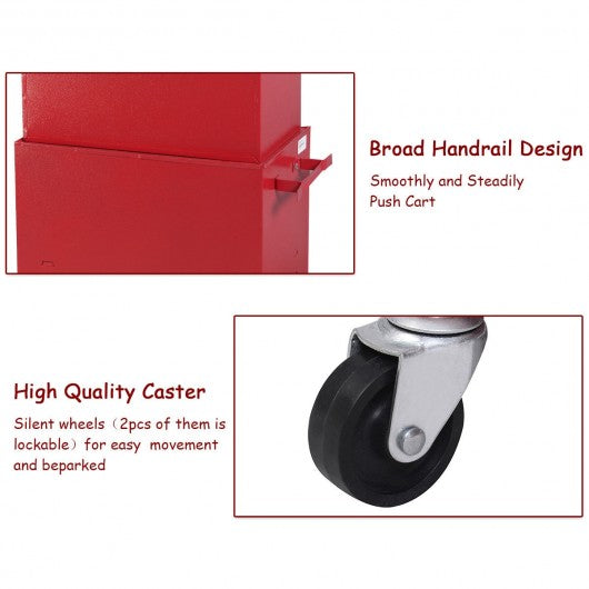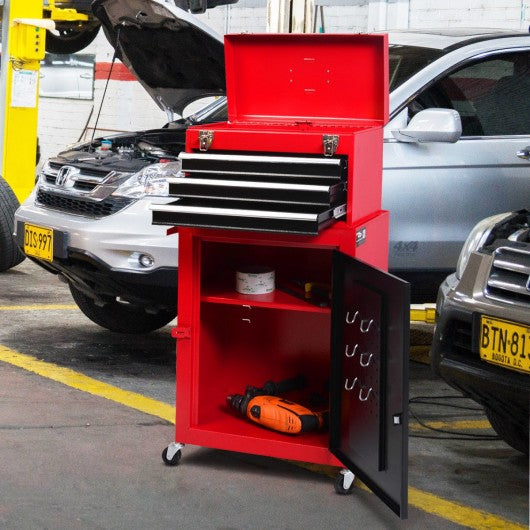 Specification: Color: Red +Black Overall dimension: 20" x 11.5" x 36" Tool chest dimension: 17" x 9.5" x 11" Storage cabinet dimension: 18" x 11" x 25" Product weight: About 27 lbs