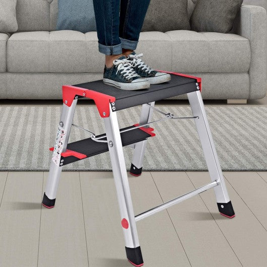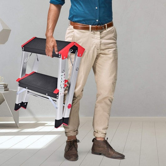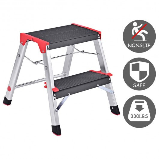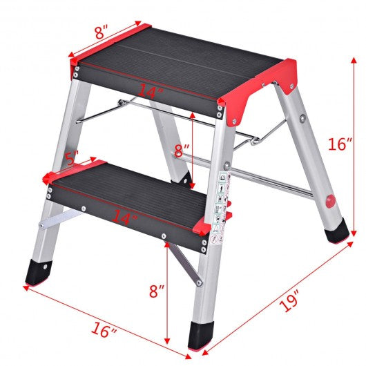 2 Step Aluminum Ladder Folding Non-Slip Platform 330Lbs Load