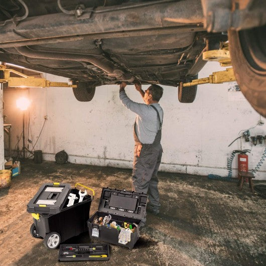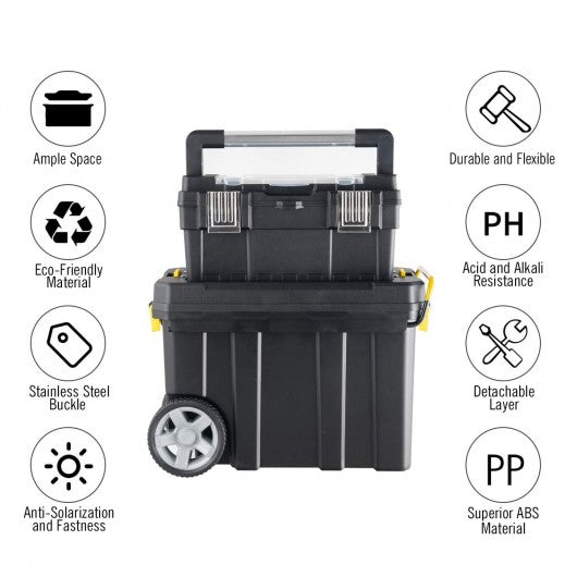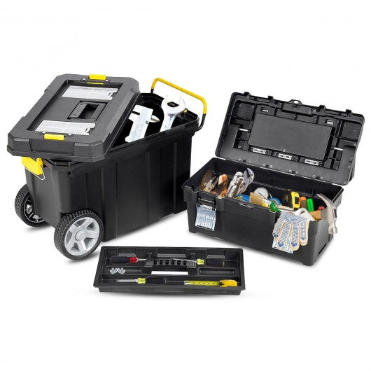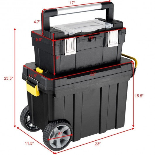 2-in-1 Rolling Tool Box Set Mobile Tool Chest Storage Organizer Portable Black