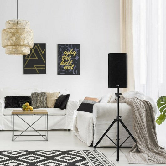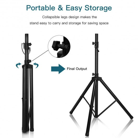 This speaker stand makes for the perfect addition to any DJ equipment set up. The speaker stand is an ultra-sturdy fold-out tripod speaker stand that perfectly fits any event. It is able to telescope to 72 inches and confidently holds speakers weighing up to 110 lbs accommodates various speaker enclosures and brings it to the perfect level for your set. The sturdy and expandable long tripod legs ensure that your speakers will be stable in any occasions. It features collapsible legs for portability as well as non-slip feet for traction on surfaces. Safety pin for maximum strength and security. It is perfect for on-stage or in-studio use. Don't hesitate to buy it! The telescoping center column is adjustable ranging from 38" to 72" high 6 ft. universal speaker stand can work with various traditional speakers with 35mm compatible insert Sturdy pin and screw locks for maximum strength and security Constructed by metal construction solid and stable to support up to 110 lbs The rugged and durable metal material tubing for safe and long term use Center brace connects tripod legs design for increased stability The equal length distribution makes the base extremely stable and safe Knob style locking mechanism offers a convenience to make the speaker attached to the stand Non-slip feet caps prevent your speaker from sliding on any surface Lightweight design and the collapsible legs for portability and storage Great for a home theater gaming music concerts or band practice at home use