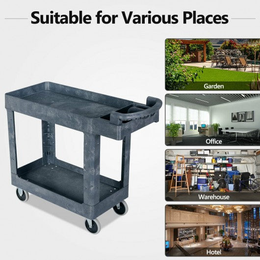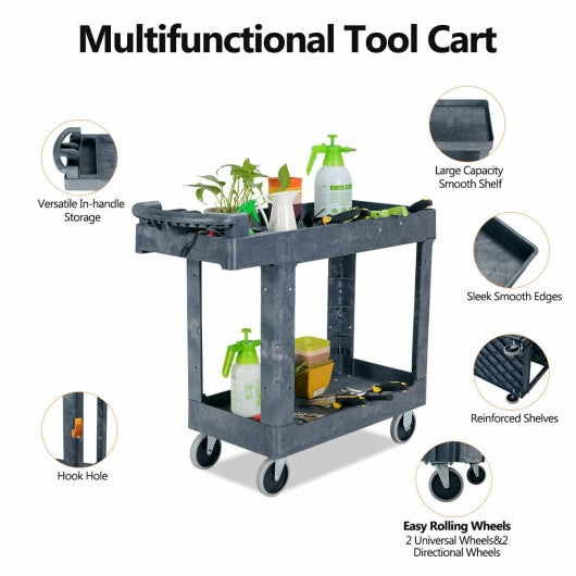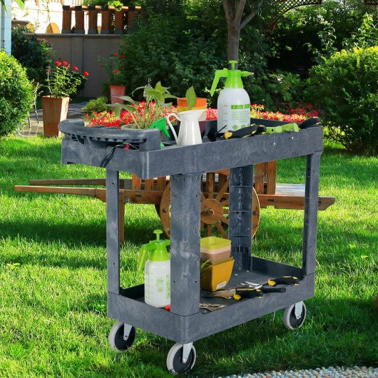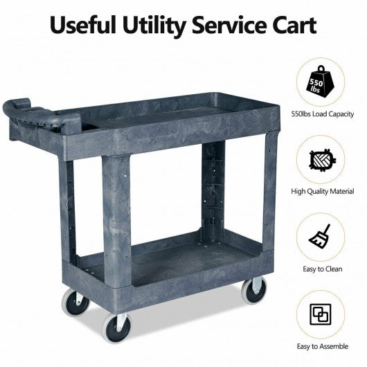 Plastic Utility Service Cart 550 lbs Capacity 2 Shelves Rolling