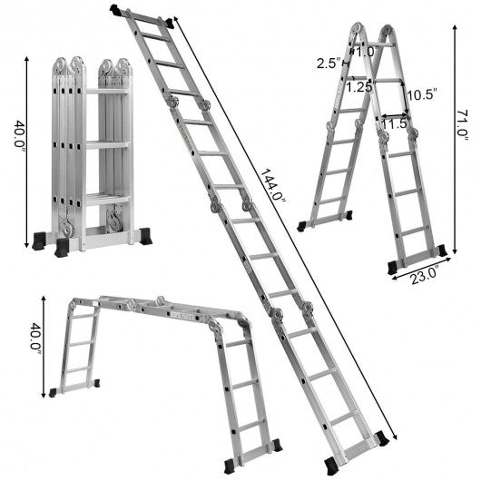 12.5' 12-Step Multi Purpose Aluminum Folding Scaffold Ladder